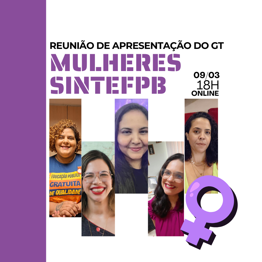 💜 GT MULHERES SINTEFPB: Nossa luta ganha um novo espaço! Nesta próxima segunda-feira (09/03), às 18h, daremos um passo fundamental.