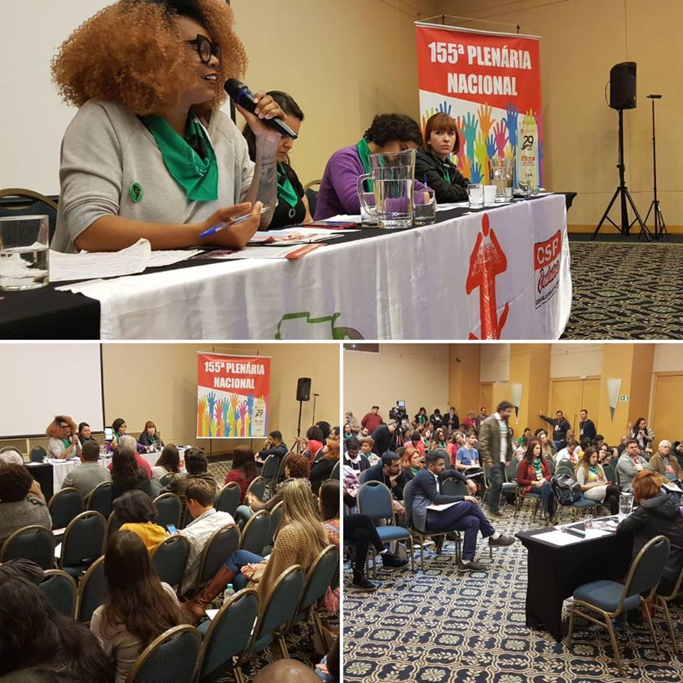 - Durante seu informe, o Sindscope apresentou sua campanha (adesivos, bandana e broche) em defesa da legalização do aborto no Brasil. Sindicato também distribuiu o material aos participantes da 155ª PLENA. Entenda melhor o debate sobre a interrupção da gravidez, em pauta nesta semana no STF, resgatado pela ADPF 442: http://justificando.cartacapital.com.br/2017/08/09/quais-sao-as-ultimas-noticias-sobre-o-direito-ao-aborto-no-brasil/