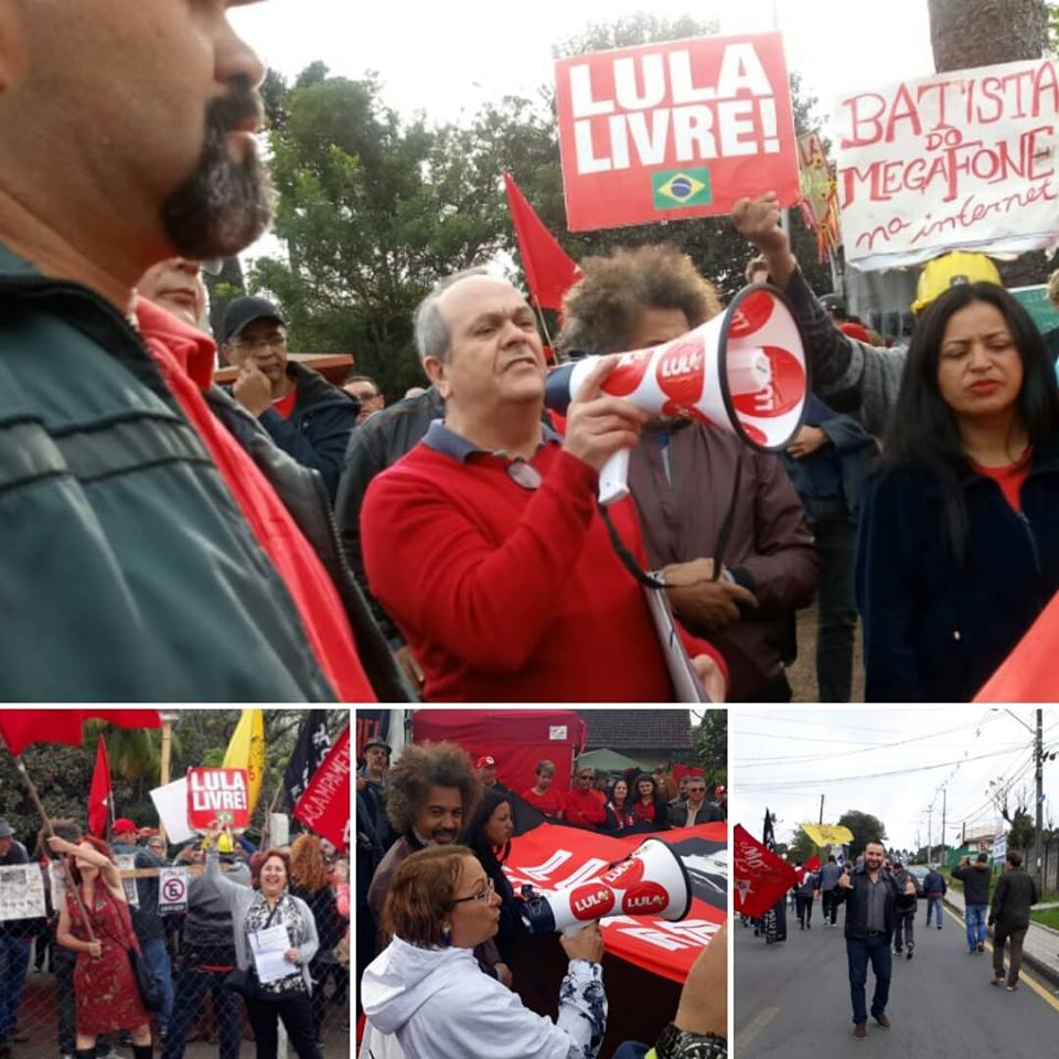 - Precedendo a retomada dos trabalhos da 155ª PLENA, um grupo sindicalizados do SINASEFE participa do tradicional “Bom dia presidente”, nas imediações da Polícia Federal. Ex-presidente Lula está preso na capital paranaense desde abril. Plenária Nacional, também realizada em Curitiba, tem previsão de retomada às 10h deste domingo (5/8).