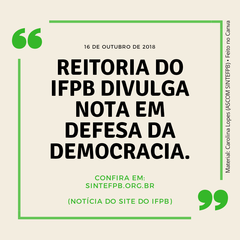 IFPB divulga ‘Nota Pública em Defesa da Democracia’. Confira!