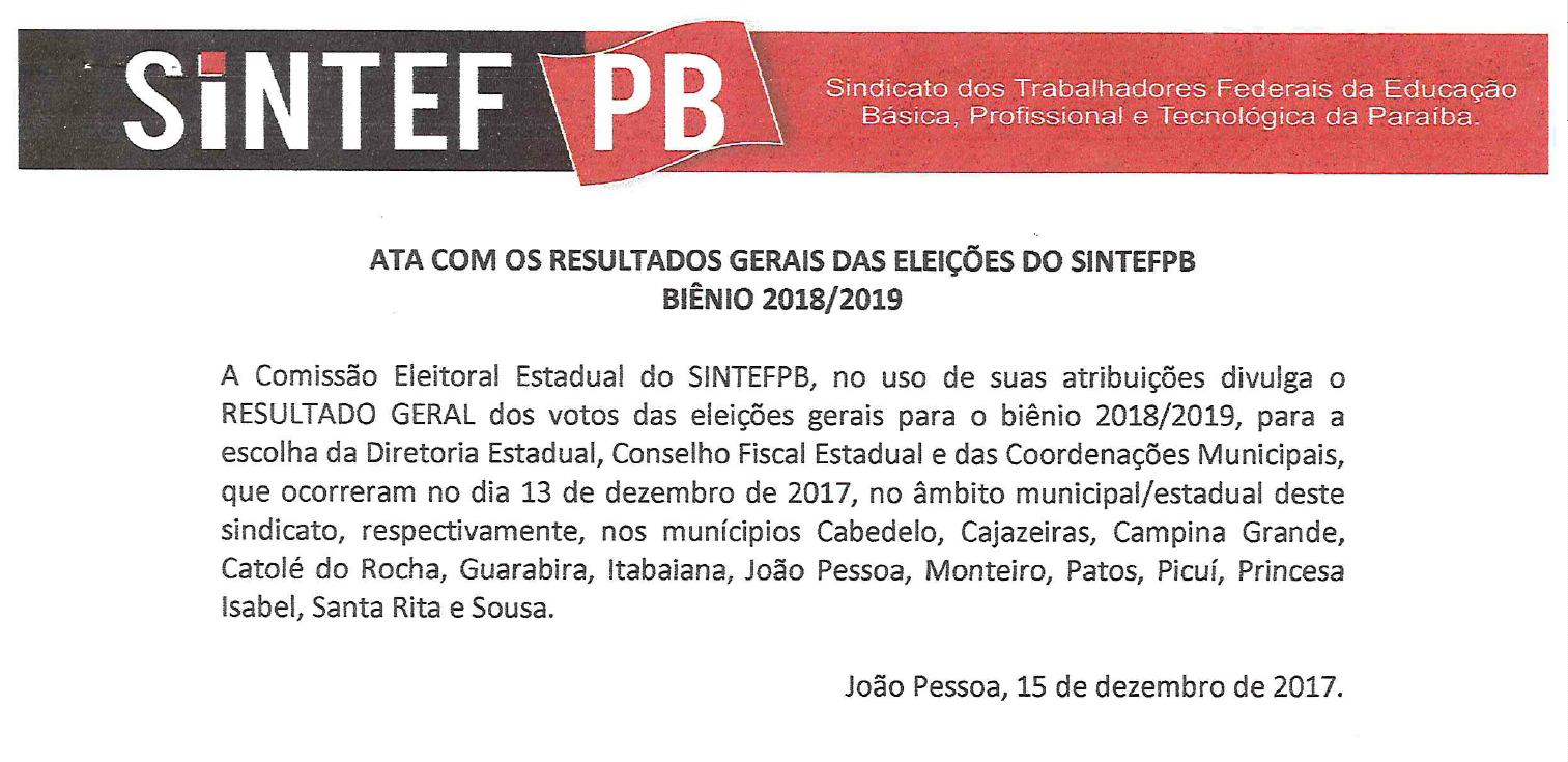 Horário do SINTEFPB esta semana (de 8 a 12 de janeiro)