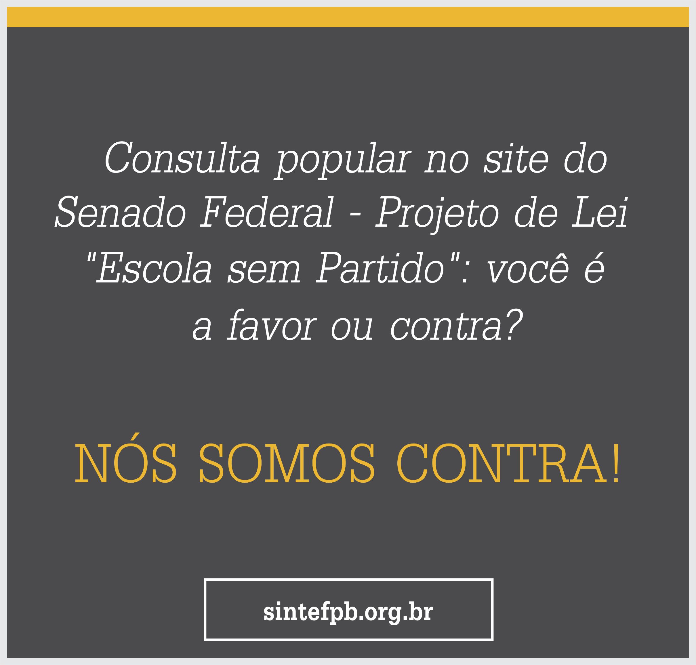 O Senado abriu consulta pública a respeito do Projeto de Lei que inclui na Lei de Diretrizes e Bases da Educação o Programa Escola sem Partido. Esse projeto de lei embasa outros quatro projetos do tipo, na Câmara dos Deputados, além de sete Assembleias Legislativas e 12 Câmaras municipais. Dentre esses projetos, há previsão