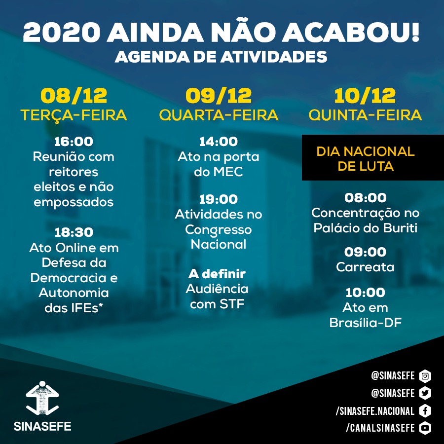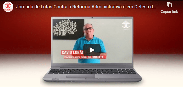 Vídeo: No vídeo acima, David Lobão, coordenador geral do SINASEFE, convida todos e todas para participar da Jornada de Lutas Contra a Reforma Administrativa e em Defesa da Democracia e da Autonomia das Instituições Federais de Ensino (IFEs), que terá atividades em Brasília-DF (com transmissão ao vivo pelas redes sociais do sindicato) entre os dias 8 e 10 de dezembro