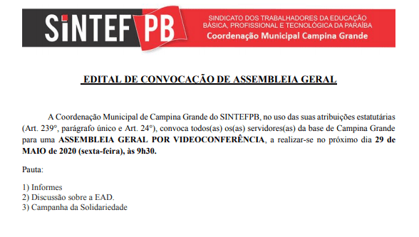 Esta live contará com a participação de Sérgio Rodrigues, coordenador de pessoal docente do SINASEFE e Coordenador Municipal do SINTEFPB campus Cabedelo. . . O SINASEFE realizará nesta quarta-feira (27/05), a partir das 18 horas, a sua 40ª transmissão ao vivo (live) desse período de isolamento social. A exibição acontecerá simultaneamente na Facebook e no YouTube do