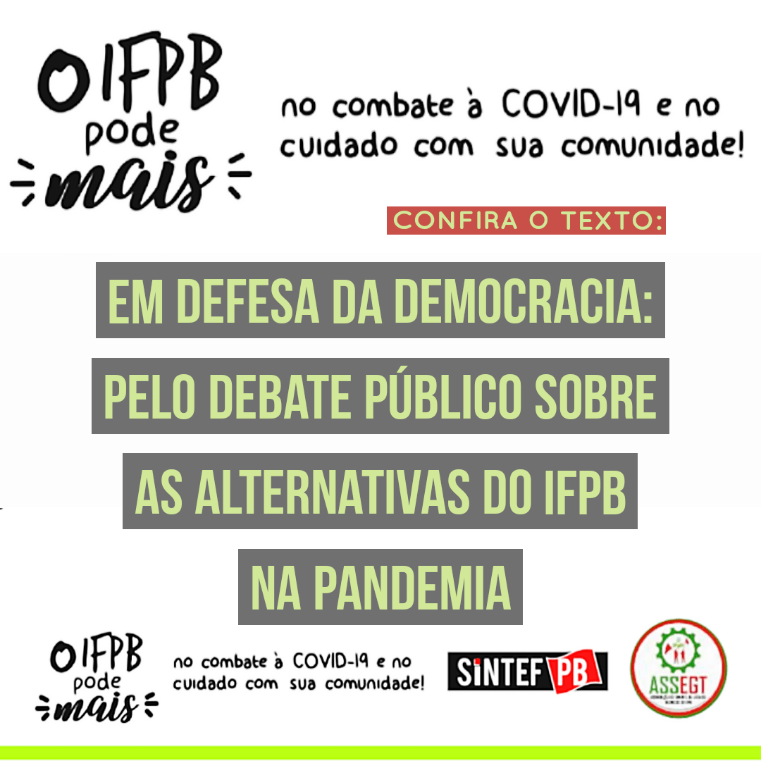 Não aceitamos que seja estabelecida a ideia de “um novo normal” que prescinda da democracia como princípio fundamental da existência do IFPB.