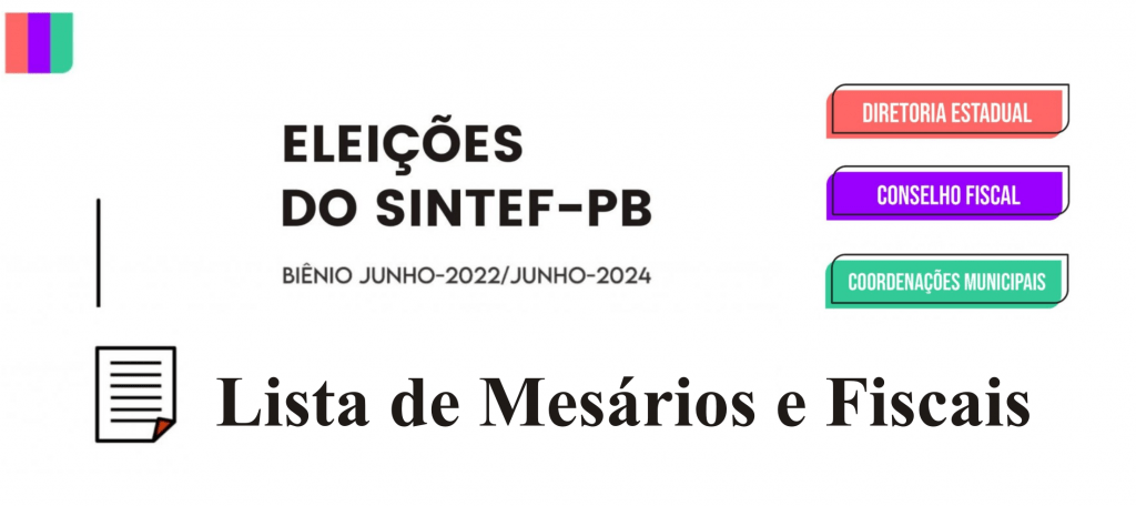 Arte completa: Lista de Mesários Lista de Fiscais … Continue lendo Lista de Mesários e Fiscais – Eleições SINTEFPB Biênio 22/24