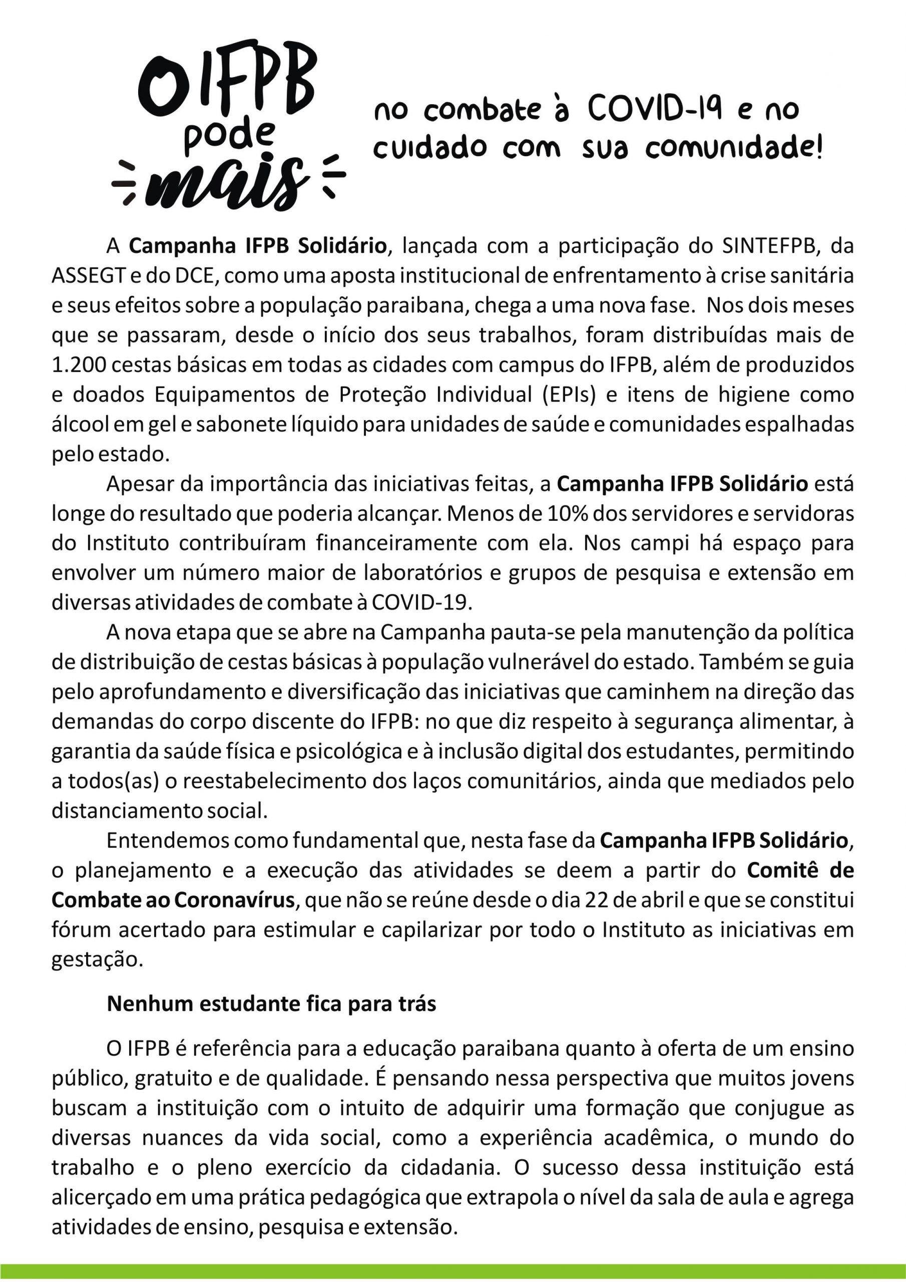 O IFPB pode mais no combate à Covid-19 e no cuidado com sua Comunidade.