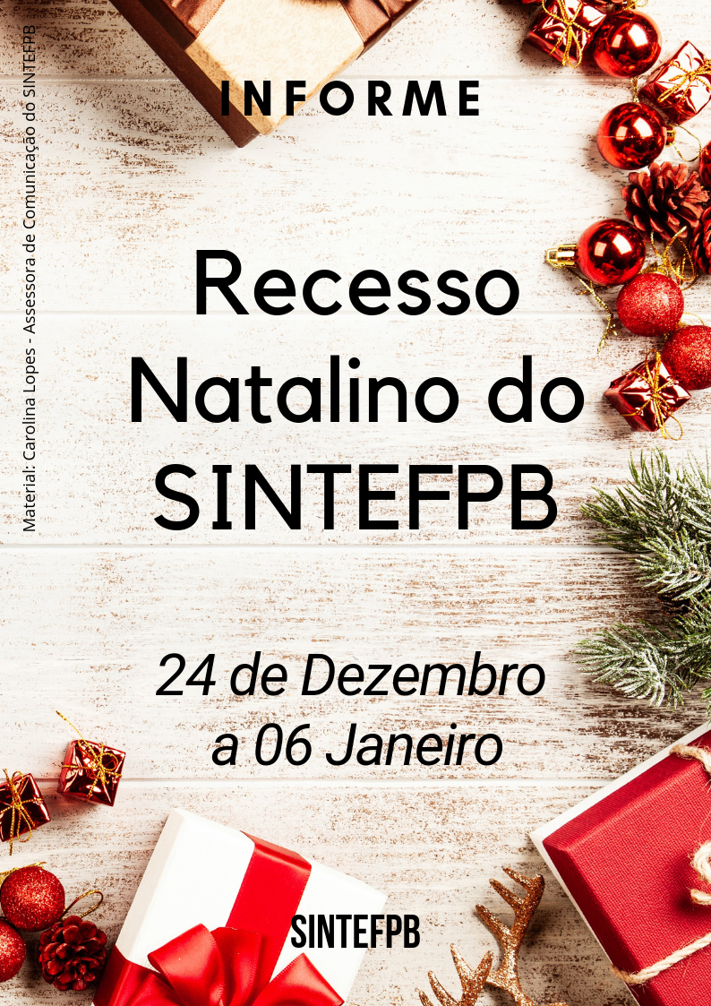 Recesso Natalino do SINTEFPB – 24 de dezembro a 06 de janeiro